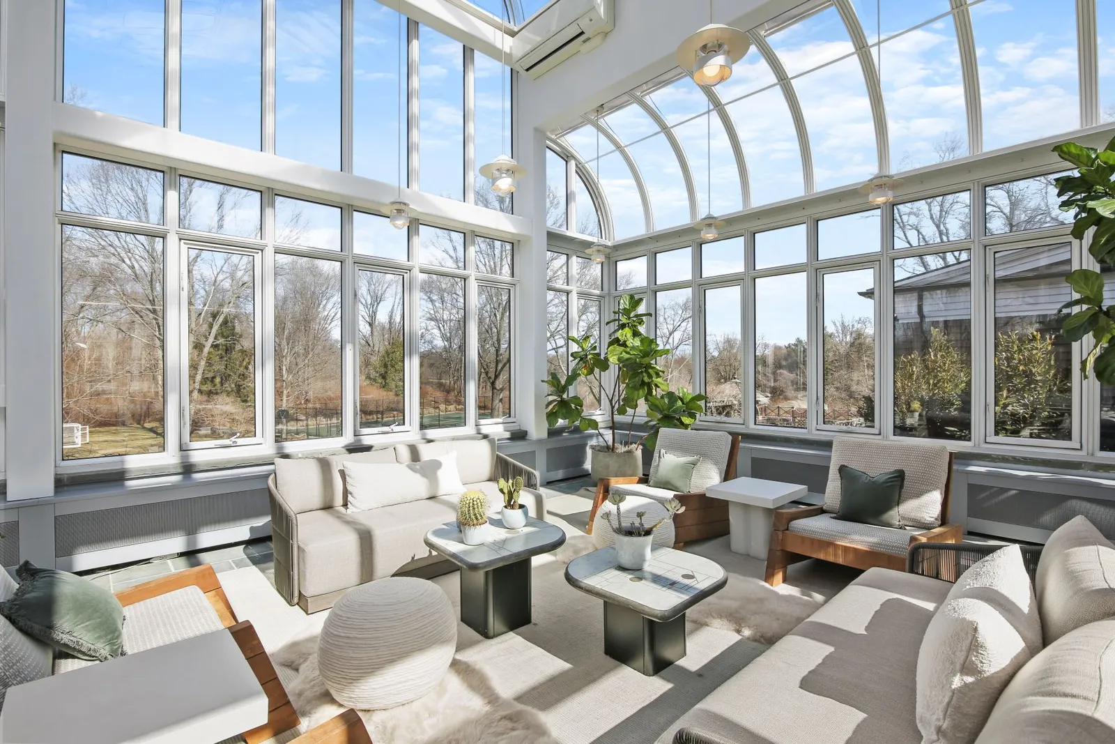 Classically elegant Shingle-style architecture by Shope Reno Wharton sets the stage for newly renovated interiors by noted designer Sara Story. Abundant natural light streams in from the solarium, banks of west-facing windows and a spectacular conservatory.