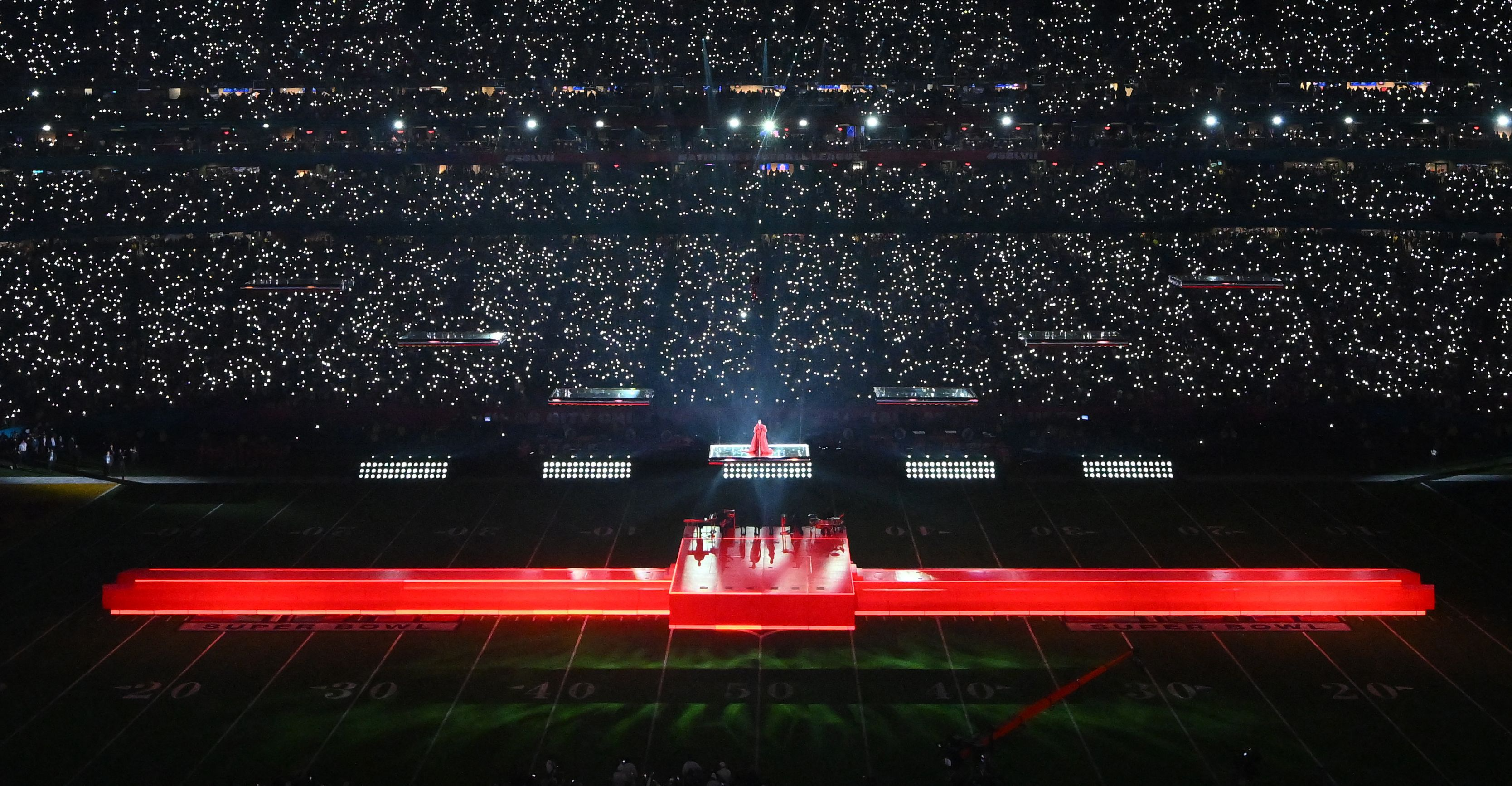 Rihanna’s hits are plentiful — she has charted more than 60 times on the Billboard Hot 100 — and they are varied. But there was no true thematic through line to this casual revue of a dozen deeply beloved songs. Mostly, she leaned into the up-tempo side of her catalog — “Where Have You Been,” “Only Girl (in the World)” — with nods to her Caribbean heritage on “Work” and “Rude Boy.” At the set’s end, she emphasized her big-picture, one-word-title smashes, “Umbrella” and “Diamonds,” which prioritize melodrama over feeling.