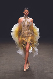 Couture Spring 2021 runway shows and fashion presentations struck gold. This cousin of silver and bronze is associated with the mystical and represents illumination, love, compassion, courage, magic and wisdom. The precious metal is also associated with wealth, power and grandeur.