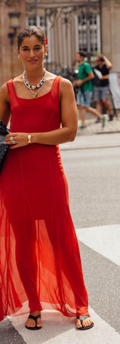 Every night, she’s turning heads in couture gowns, hair and makeup perfect. Every night, Aleksandr takes her somewhere more glamorous than the previous evening. So it’s no surprise that when he tells her to be ready for another evening with him, she spends her afternoon in hair and makeup, slipping into the fabulous - and now famous - Versace Mille Feuille skirt, only to open the door to her apartment to find him there, dressed casually and holding take out.
