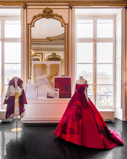 Piccioli involved a new generation of young artists, mainly painters from around the globe, bringing them to Rome to interact with the artisans at the couture atelier. The designer hoped, that by bringing together these artists and craft people from different realms of art and fashion, to start a conversation to work together, merging the painters’ ideas and the craft into a three-dimensional haute couture dress. The hands of the artists and the hands of the atelier performed the artistic tasks together.